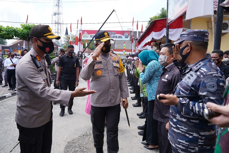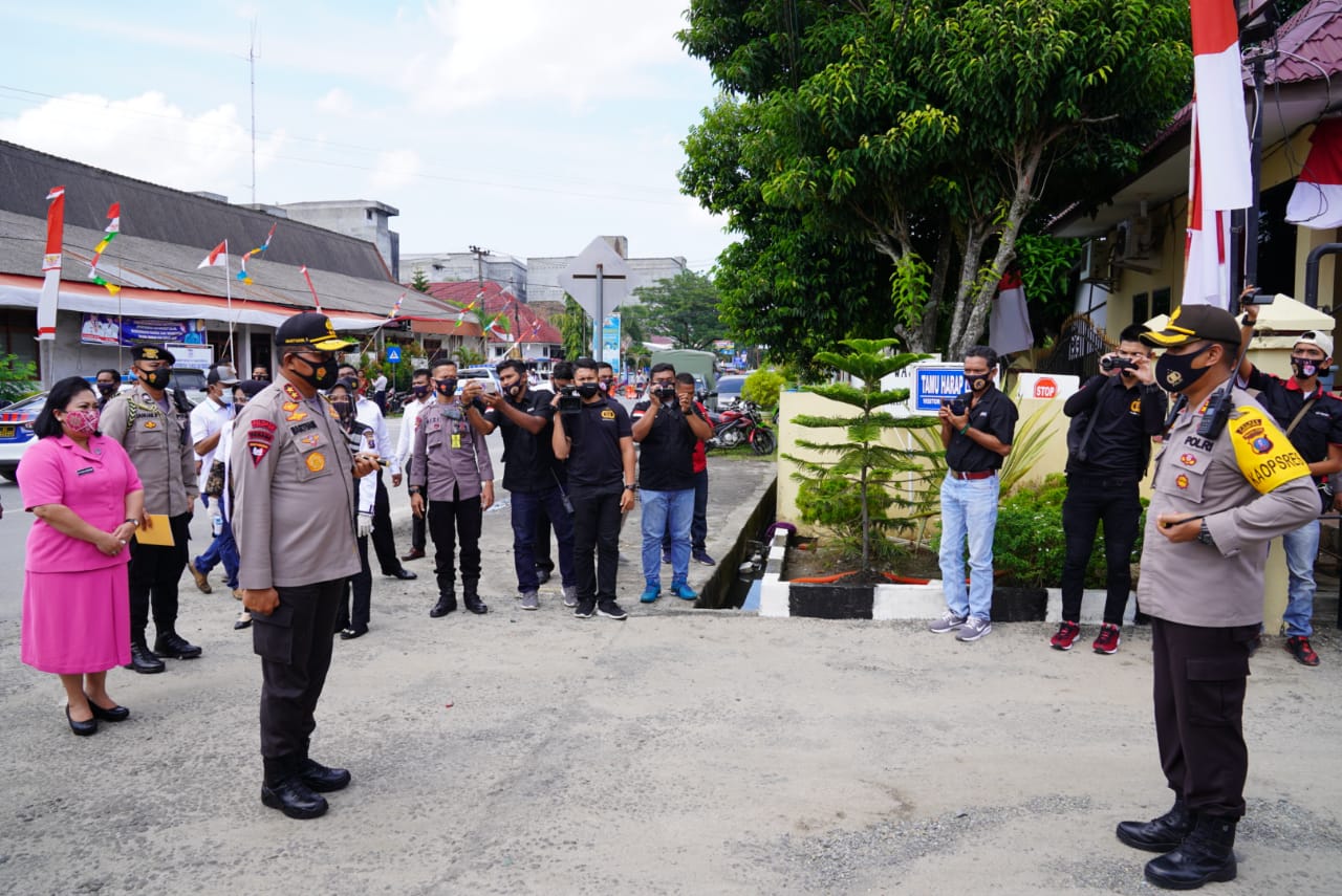 TANJUNG BALAI | TRANSPUBLIK.co.id – Kapolda Sumut Irjen Pol Drs. Martuani Sormin, M.Si didampingi oleh Ibu Ketua Bhayangkari Sumut bersama rombongan kunjungan ke Polres Tanjung Balai dalam pengecekan Kampung Tangguh dan pendisiplinan protokol kesehatan juga meresmikan Poliklinik Polres Tanjung Balai.