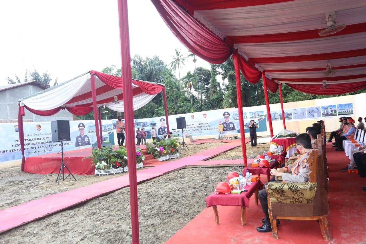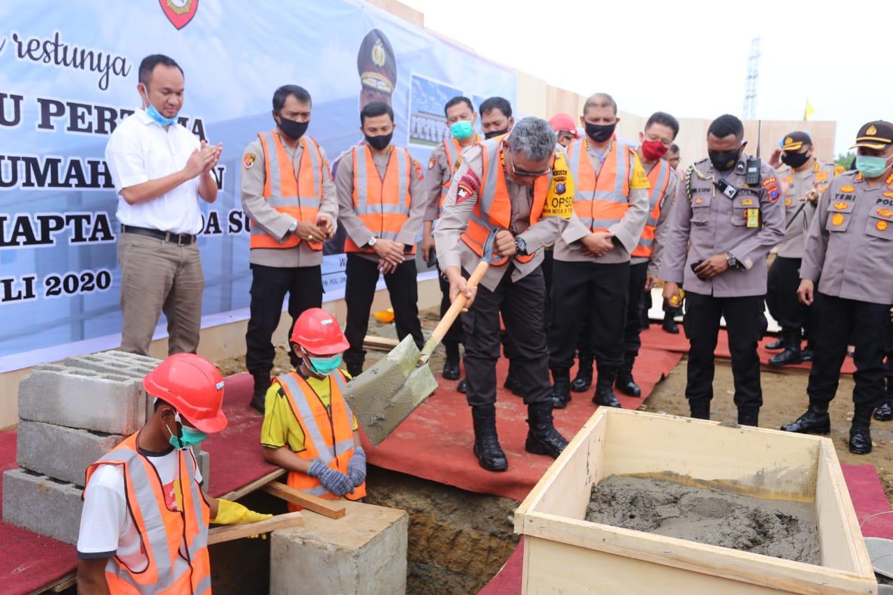 MEDAN | TRANSPUBLIK.co.id Kapolda Sumut Irjen Pol. Drs. Martuani Sormin M.Si melaksanakan peletakan batu pertama pembangunan rusun dan fasilitas umum Dit Samapta Polda Sumut bertempat di Lapangan belakang Mapolda Sumut, Jumat (10/07/2020).