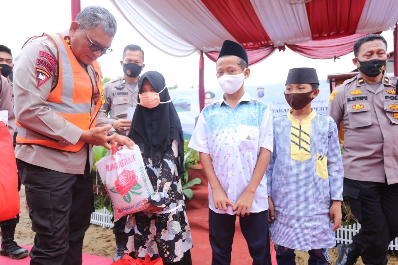 Turut hadir Mendampingi Kapolda Sumut yaitu Irwasda Polda Sumut, para PJU Polda Sumut, perwakilan PT. Rajasa Karya dan personil Dit Samapta serta Anak yatim Piatu dari panti Takaful Patumbak.