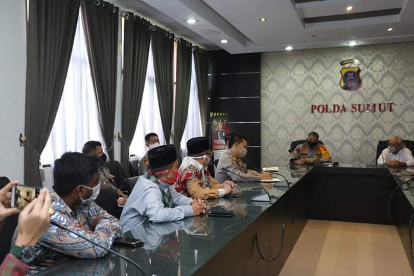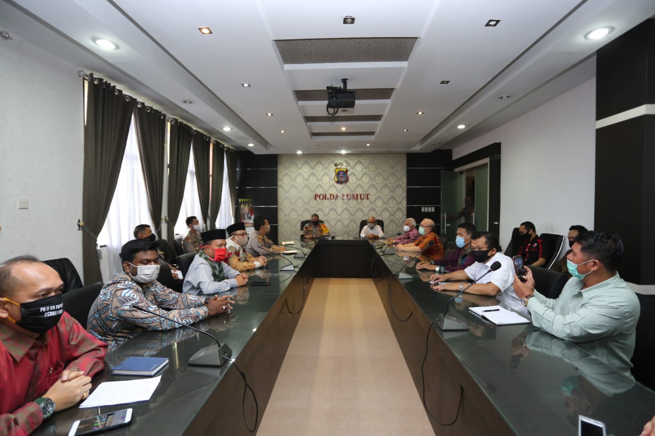 MEDAN | TRANSPUBLIK.co.id Kapolda Sumut Irjen Pol Drs Martuani Sormin Siregar MSi, audensi dengan para tokoh lintas agama serta masyarakat wujudkan aman dan nyaman wilayah Sumut terkait situasi Kamtibmas, di Ruangan Rapat Sinabung, Mapolda Sumut, Jum’at (1/5/2020).
