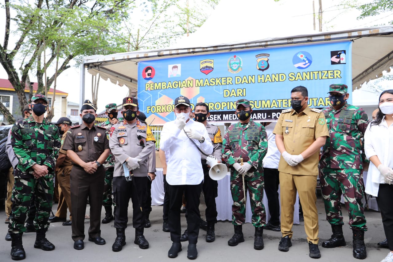 Gubernur Sumut, Edy Rahmayadi, usai membagikan masker dan handsaniter itu mengatakan kedatangannya bersama Kapolda Sumut, Pangdam I/BB dan Wali Kota Medan sekaligus memantau penerapan protokol kesehatan di pasar tradisional, ini adalah inisiasi Kapolda untuk terus disiplin dalam pencegahan covid 19.