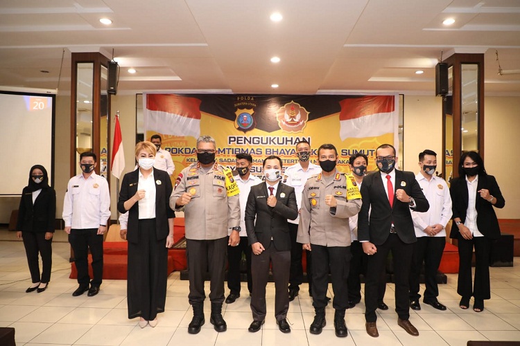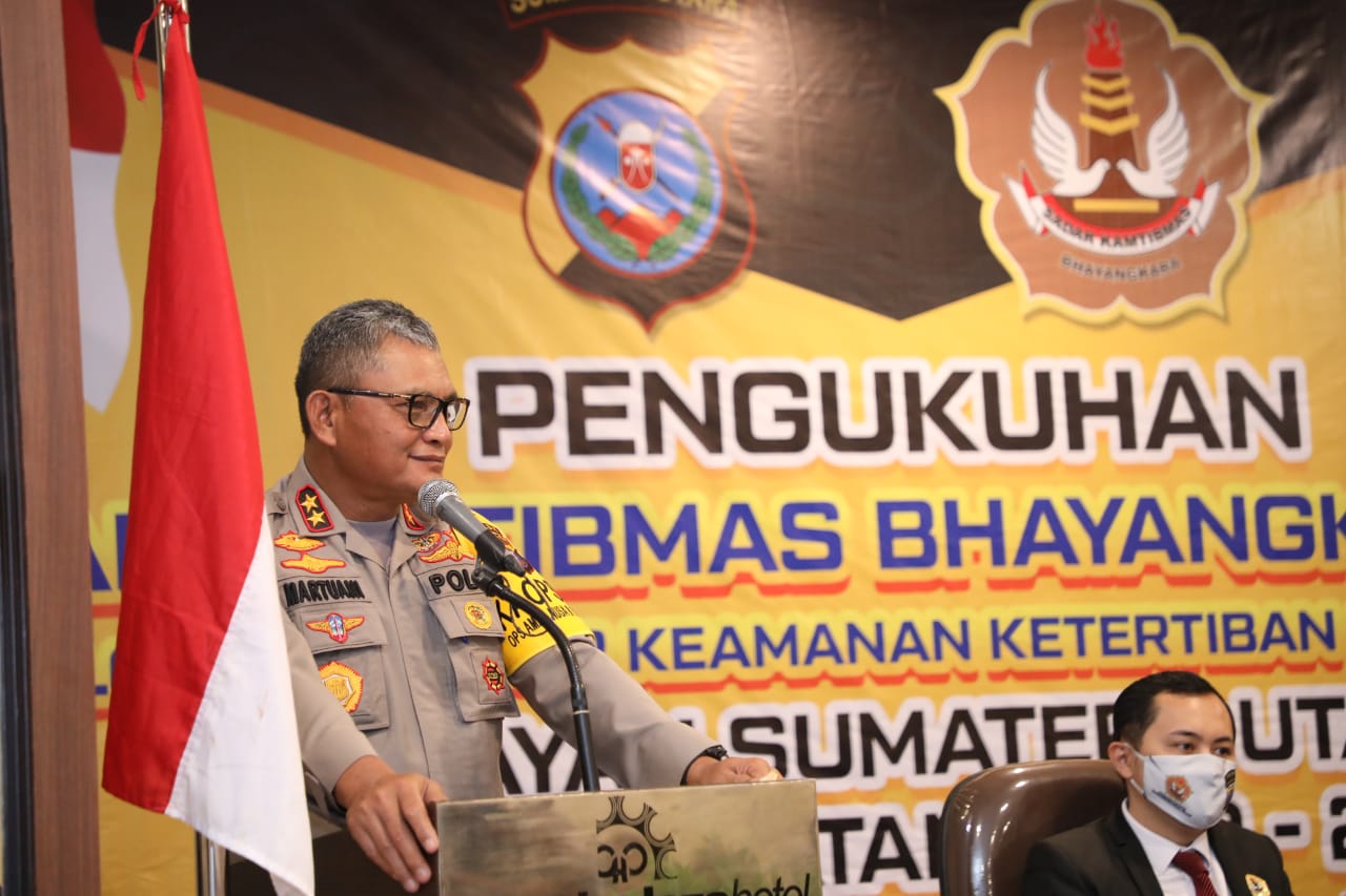 SUMUT | TRANSPUBLIK.co.id – Kapolda Sumut Irjen Pol. Drs. Martuani Sormin, M.Si didampingi Dir Binmas Polda Sumut dan Kabid Humas Polda Sumut kukuhkan pengurus Pokdarkamtibmas Bhayangkara (Kelompok Sadar Keamanan Ketertiban Masyarakat) wilayah Sumut, Rabu (17/6/2020).