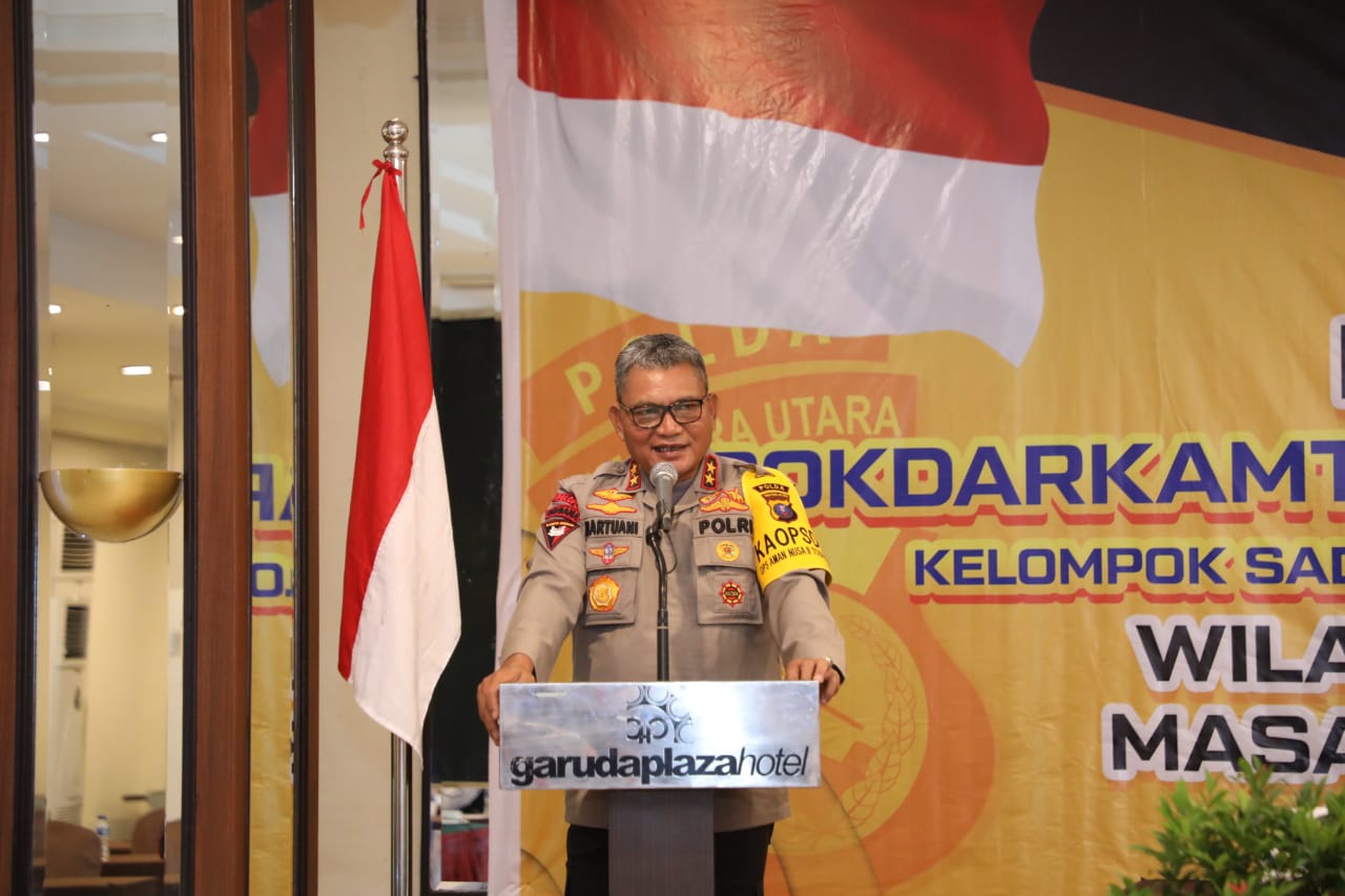 Lanjut, Irjen Martuani menambahkan sejak menjabat sebagai Kapolda Sumut ada beberapa permasalahan sosial yang menjadi atensi untuk diberantas. Permasalahan pertama yaitu Narkotika. “Jika masih main-main dengan Narkotika maka tidak ada toleransi dan diberi tindakan tegas terukur. Anggota yang main main juga tidak segan saya pidanakan,” tegasnya.
