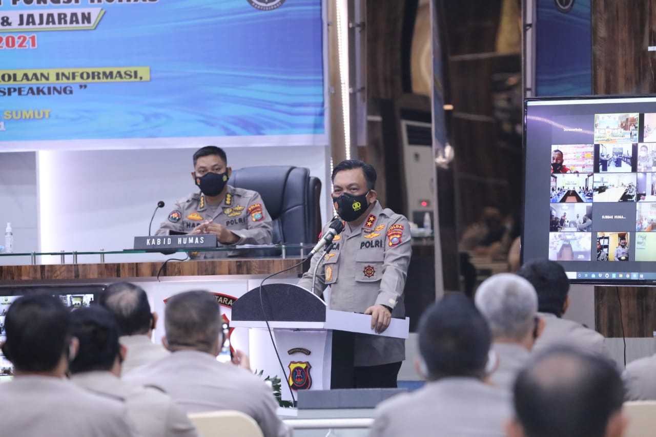 Transpublik.co.id : Mapoldasu-Kapoldasu, Irjen R.Z. Panca Simanjuntak membuka pelatihan pembinaan fungsi humas sejajaran Polda Sumut, Senin (3/5/21) Pagi