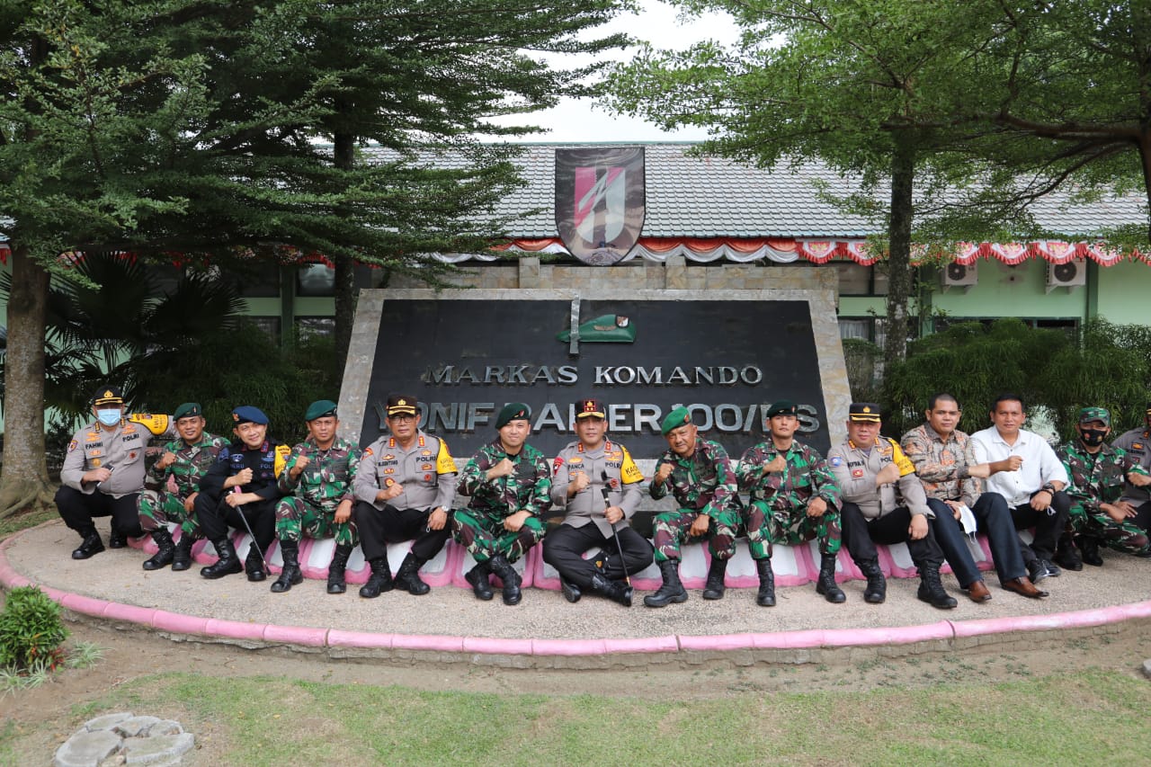 Kegiatan kunjungan Kapolda Sumut dan rombongan ke Batalyon Infanteri Raider 100/PS berlangsung dengan akrab dan penuh semangat kekeluargaan serta tetap mematuhi protokol kesehatan.