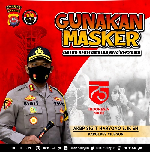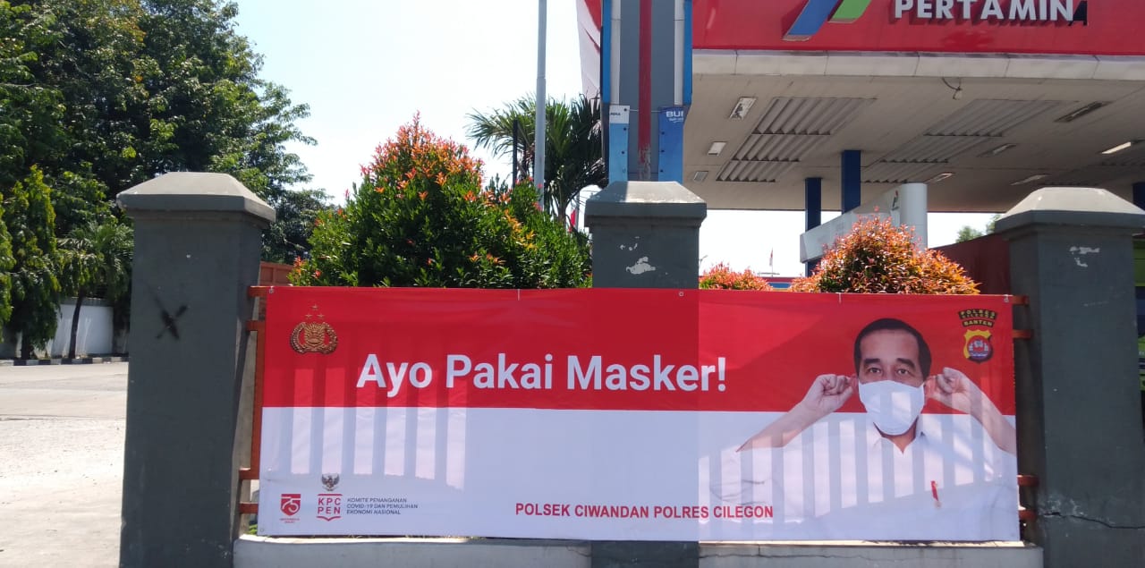 Kapolres Cilegon AKBP Sigit Haryono S Ik SH menyampaikan bahwa spanduk Yang bertuliskan “Ayo Pakai Masker” tersebut di pasang di setiap jalan protokol, kantor pemerintahan serta perkantoran di daerah hukum Polres Cilegon.