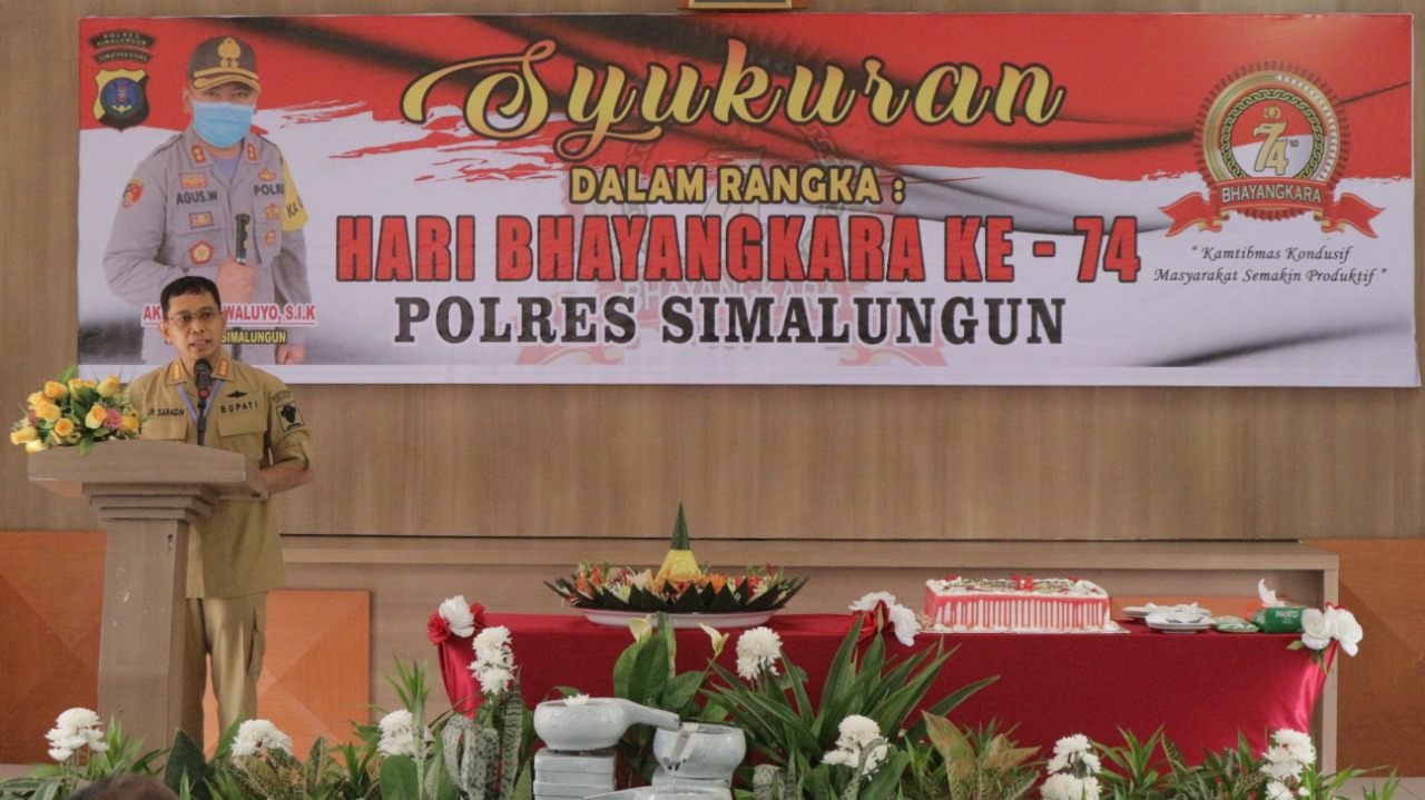 Dan pada pukul 9.15 WIB dilakukan kegiatan Syukuran Hari Bhayangkara Ke-74 Tahun 2020 yang bertempat di Aula Andar Siahaan, Polres Simalungun.