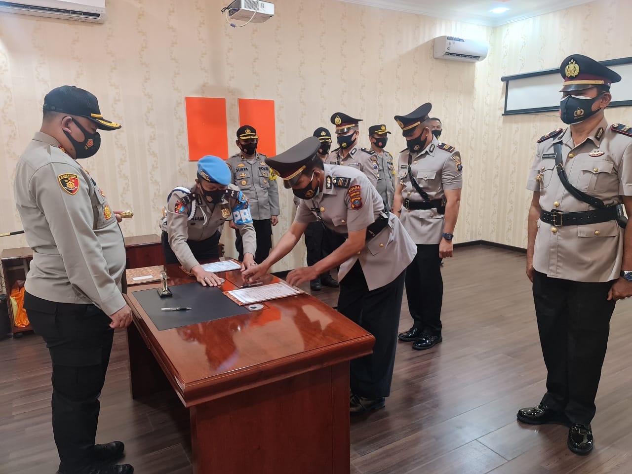 SIMALUNGUN | TRANSPUBLIK.co.id -Kapolres Simalungun AKBP Agus Waluyo, S.I.K., memimpin serah terima jabatan (sertijab) dua jabatan Kasat Sabhara dan Kapolsek Tiga Balata Polres Simalungun dengan mengikuti protokol kesehatan, di Kantor SATPAS Sat Lantas Polres Simalungun, Kamis (07/01/2021).