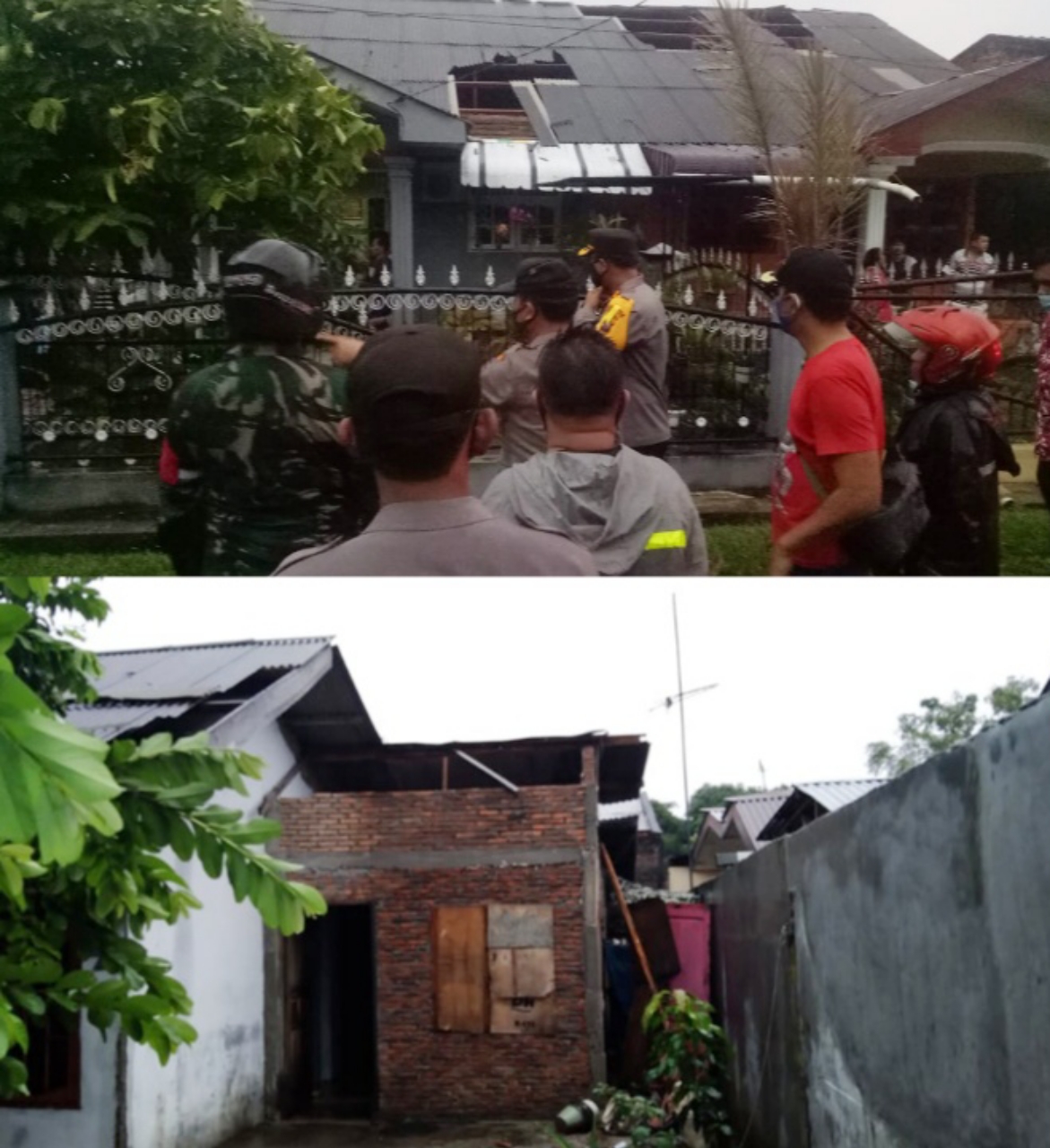 TEBING TINGGI I TRANSPUBLIK.co.id -Kapolres Tebing Tinggi AKBP AGUS SUGIYARSO, S.IK bersama PJU Polres Tebing Tinggi mencek langsung kelokasi 11 unit rumah permanen milik warga yang rusak berat akibat bencana angin puting beliung yang terjadi,Rabu (13/1/2021) sekitar pukul 16.30 WIB di Lk. II Jl. Gunung Papandayan dan Lk. III Jl. Yos Sudarso Kel. Tanjung Marulak Kec. Rambutan Kota Tebing Tinggi.