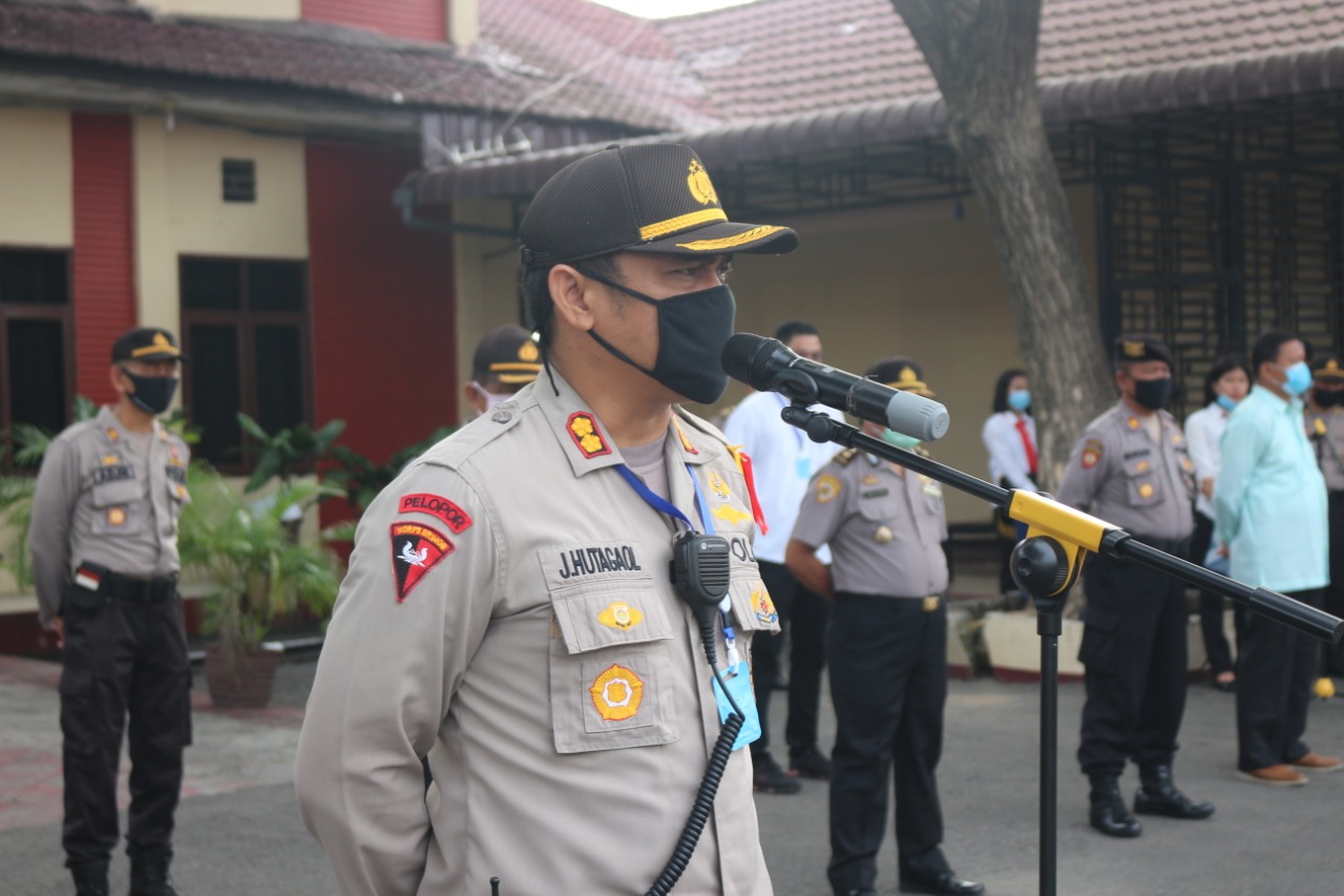Kapolres Tebing Tinggi AKBP James P. Hutagaol, SIK dalam arahannya menyampaikan, “Mari berprestasi, bekerja dengan ikhlas dan jangan mengharapkan imbalan, dalam situasi saat ini masalah Covid-19 agar kita dapat menjaga diri sendiri dan keluarga untuk selalu menjaga kesehatan dan tidak berkumpul serta ikuti protokol kesehatan. Bekerjalah sesuai dengan SOP, bersinergi dan jangan iri terhadap rekan,” ucap Kapolres.