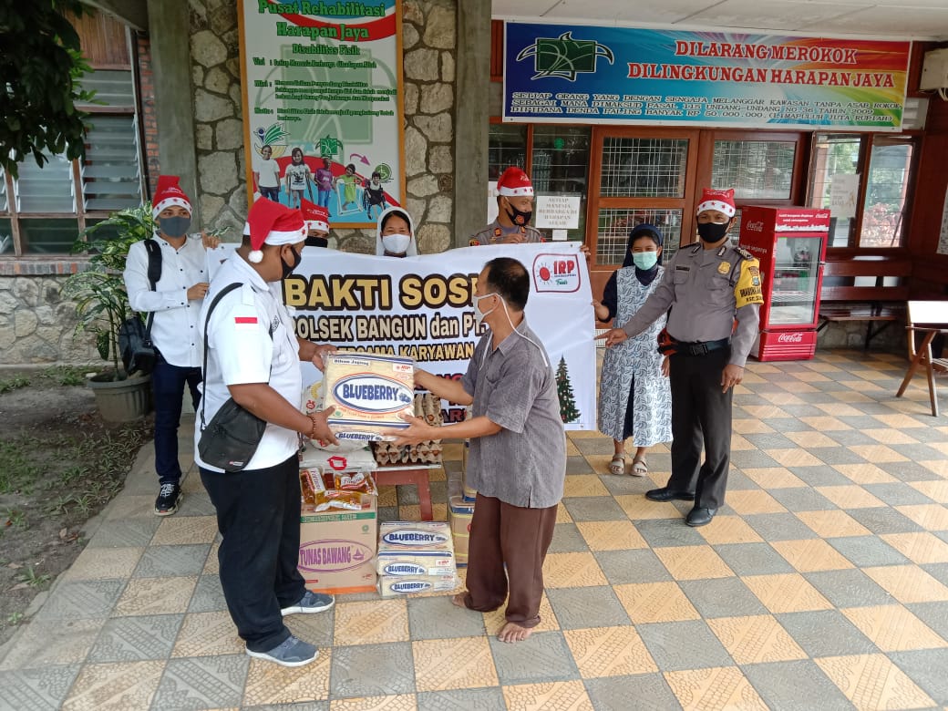 SIMALUNGUN | TRANSPUBLIK.co.id -Memeriahkan Perayaan Natal Tahun 2020 dan Tahun Baru 2021, Kapolsek Polsek Bangun mewakili Kapolres Simalungun menggelar Bakti Sosial (Baksos) dengan memberikan Sembako Kepada Pusat Rehabilitasi Harapan Jaya di Nagori Lestari Indah Kecamatan Siantar dan Panti Asuhan Mamre GKPI di Nagori Rambung Merah Kecamatan Siantar atau diwilayah hukum (Wilkum) Polsek Bangun, Rabu (23/12/2020) siang sekira pukul 13.30 Wib kemarin.