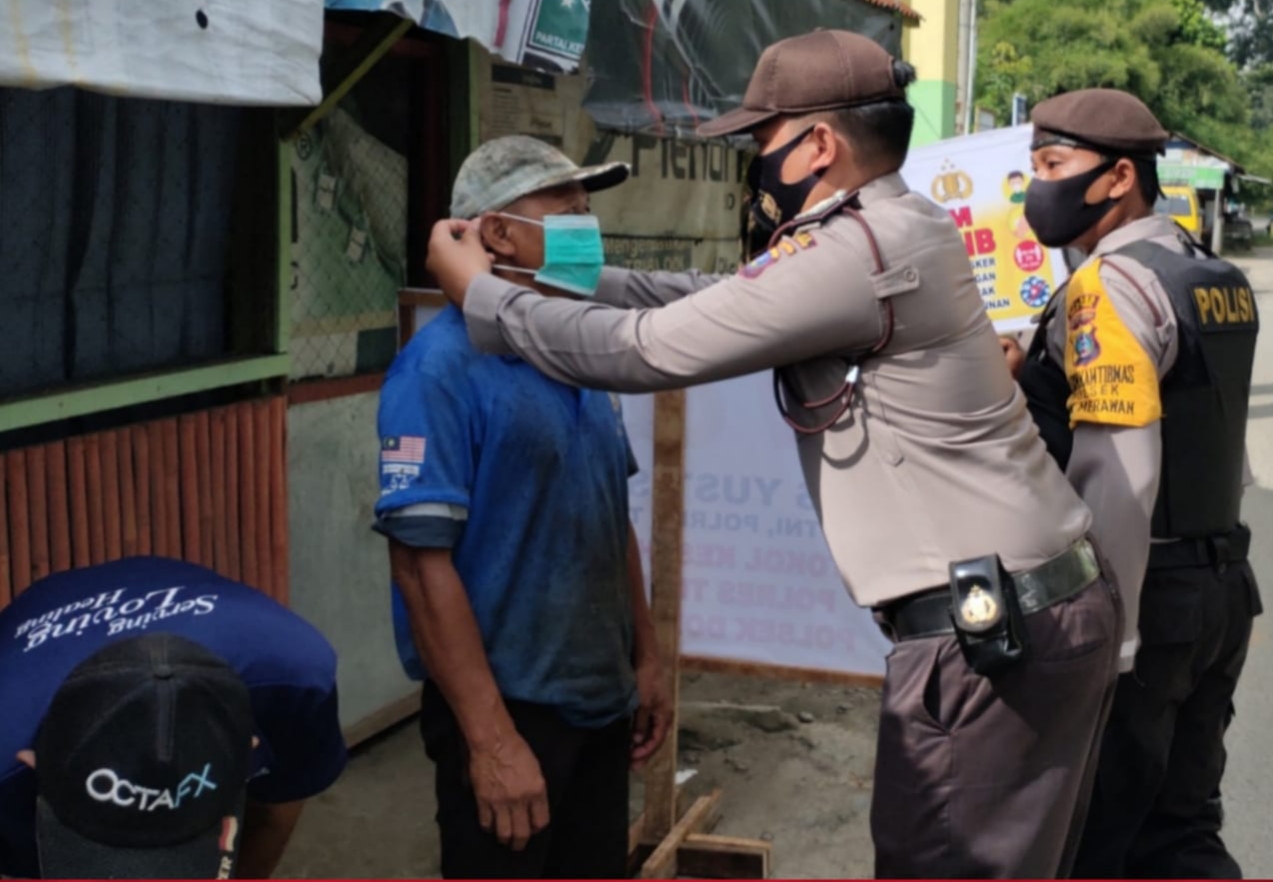 “Dan juga telah dilakukan Penggalangan terhadap Komunitas,dengan jumlah komunitas yang digalang sebanyak 30 orang yaitu bagi masker 30 buah dan teguran 5 orang,” jelasnya AKP Asmon Bufitra.