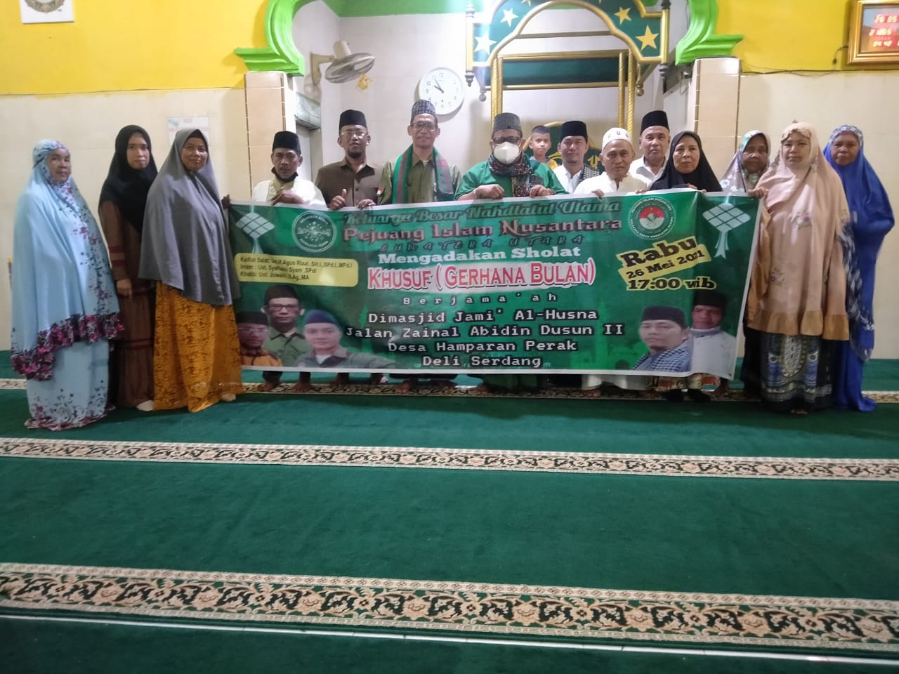 Keluarga Besar Nahdlatul Ulama Pejuang Islam Nusantara Sumatera Utara bekerjasamadengan BKM Alhusna Jl.Zainal Abidin Dusun II Sei Baharu Hamparan Perak, Deliserdang rabu (26/05/21) melaksanakan salat khusuh Gerhana Bulan.