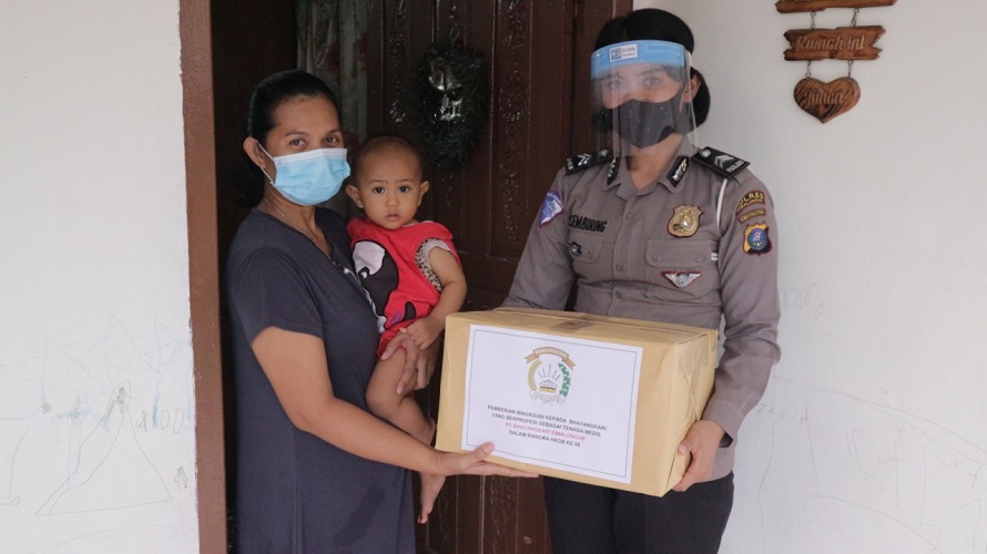Ketua Bhayangkari Polres Simalungun Bagikan Bingkisan Kepada Bhayangkari Yang Berprofesi Sebagai Tenaga Medis, “BAKTI SOSIAL BHAYANGKARI PEDULI KEMANUSIAAN”