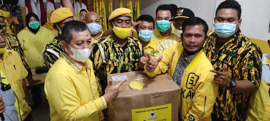 MEDAN | TRANSPUBLIK.co.id – Ketua Umum DPP Partai Golkar Dr Ir Airlangga Hartarto MBA, MMT menyerahkan bantuan 40 ribu masker kepada masyarakat di 21 kecamatan di Kota Medan.