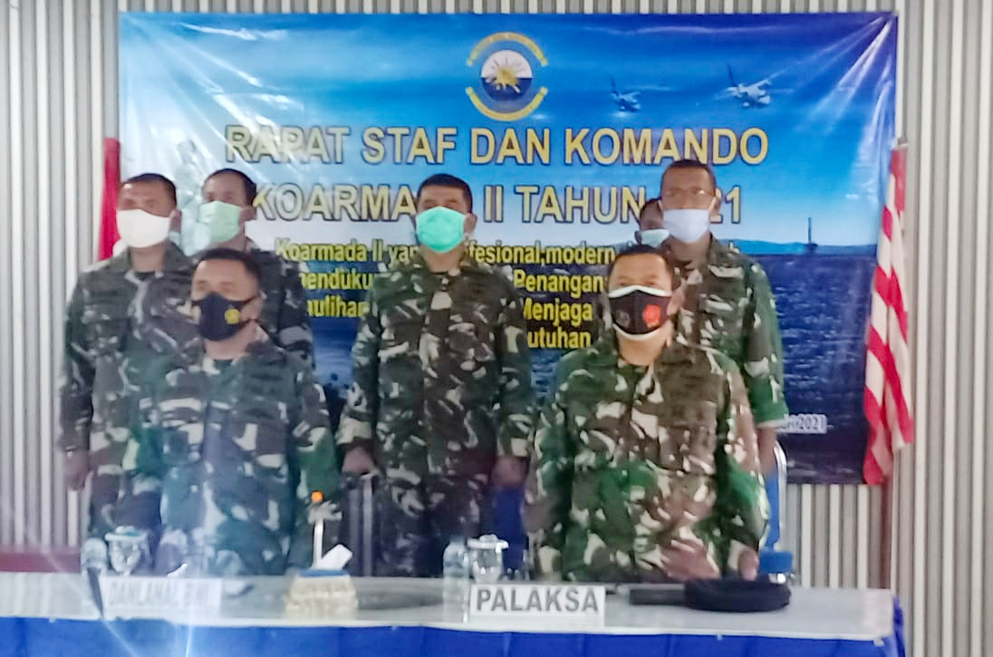 Kemudian Pangkoarmada II memberikan arahan dan kebijakannya sesuai Kebijakan KASAL dengan tema dalam Rasko Koarmada II Yang Profesional, Moderen Dan Tangguh Siap Mendukung Percepatan Penanganan Covid-19 Dan Pemulihan Ekonomi Serta Menjaga Persatuan Dan Kesatuan Demi Keutuhan NKRI., dengan mengatakan, ” Tingkatkan, peningkatan BIN, Intelijen Maritim (Intelmar), Peningkatan Sismed, Peningkatan Kemampuan dan Keterampilan Personel, Peningkatan Sarpas Matsus Intelijen.”. terangnya.