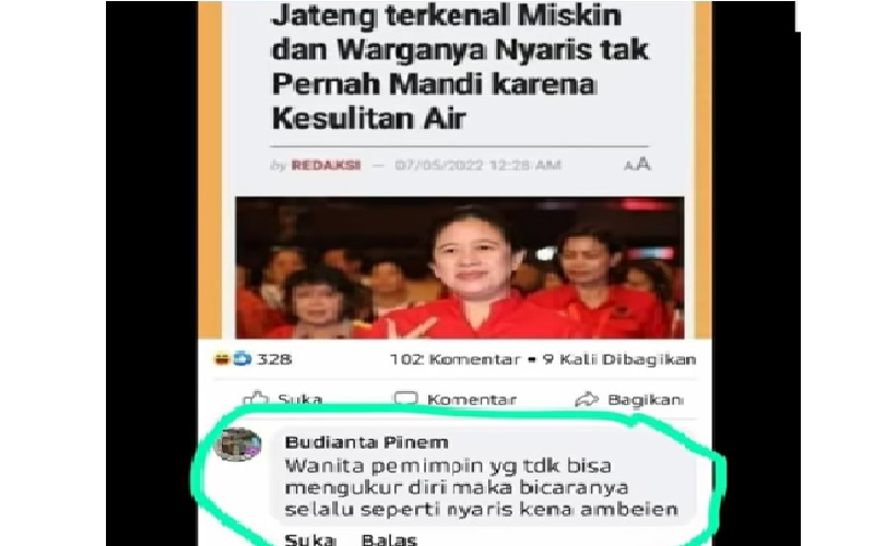 Dalam unggahan berita itu tampak Budianta Pinem mengomentari Puan. Dia menyebutkan Puan merupakan sosok yang tak bisa mengukur diri.