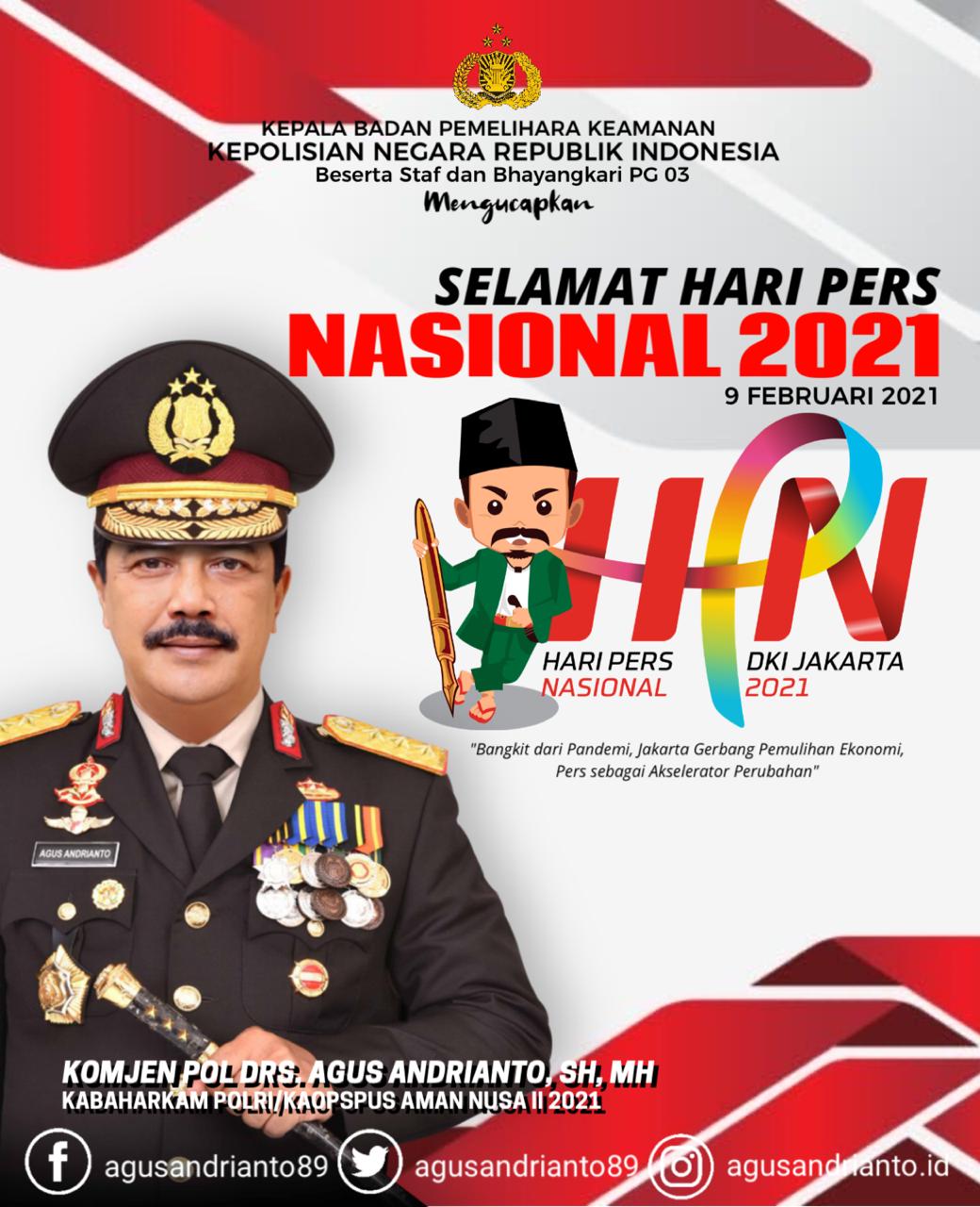 JAKARTA | TRANSPUBLIK.co.id – Kepala Badan Pemelihara Keamanan (Kabaharkam) Polri, Komjen Pol Agus Andrianto, mendapat suntikan vaksinasi COVID-19 hari ini, Salasa, 9 Februari 2021.