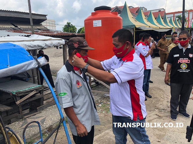ROKAN HILIR | TRANSPUBLIK.co.id – Komunitas Fortuner Owner Club Indonesia (FORCI) Chapter Kabupaten Rokan Hilir bersama Polres Rokan Hilir (Rohil) membagikan 5000 Masker Gratis, Senin (31/8/2020) kepada masyarakat dan pengendara di Kelurahan Ujungtanjung, Kecamatan Tanah Putih, dalam rangka memutus mata rantai covid-19.