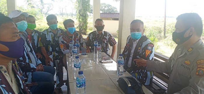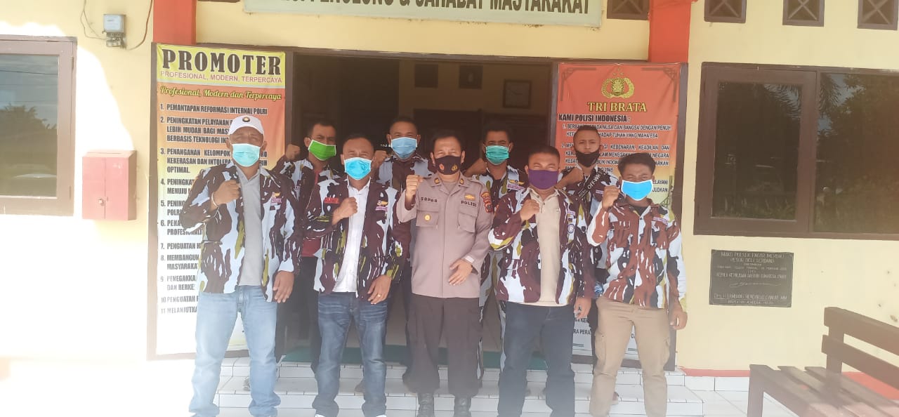 DELI SERDANG | TRANSPUBLIK.co.id – Kapolsek Pagar Merbau AKP Sopar Budiman bersama Ketua PAC Ikatan Pemuda Karya Kecamatan Pagar Merbau abangda Hardono dan pengurus duduk bersama di Mako Polsek Pagar Merbau dalam rangka cipta kondisi yang tercipta di wilayah hukum Polsek Pagar Merbau, Sabtu (17/10/2020).