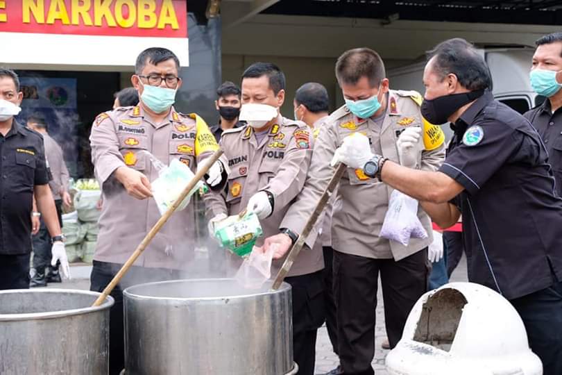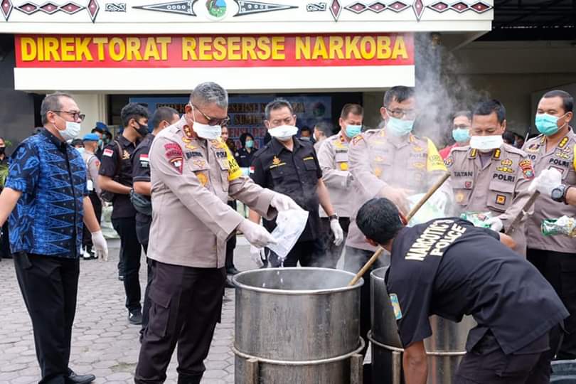 Dengan demikian usai nya Kapolda Sumut memberikan paparan berserta Wakapolda Sumut juga unsur terkait melakukan pemusnahan baik berupa merendam juga pembakaran secara bersama-sama di Mapolda Sumut.