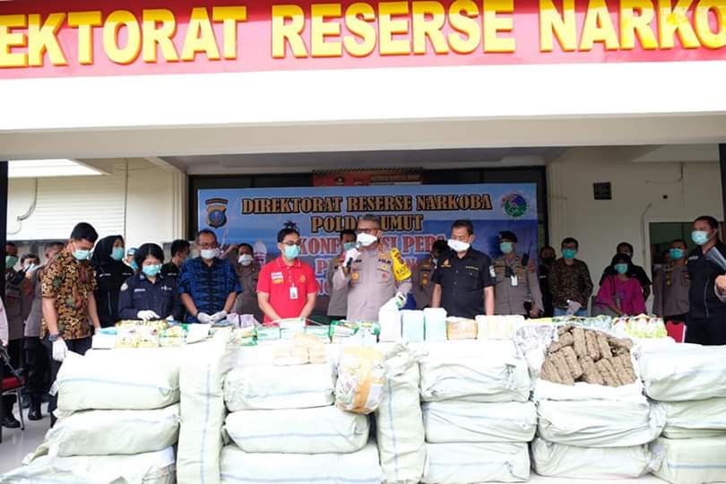 Dalam Konferensi Pers tersebut turut serta di hadiri oleh Wakapolda Sumut, Dir Narkoba Polda Sumut dan PJU Polda Sumut
