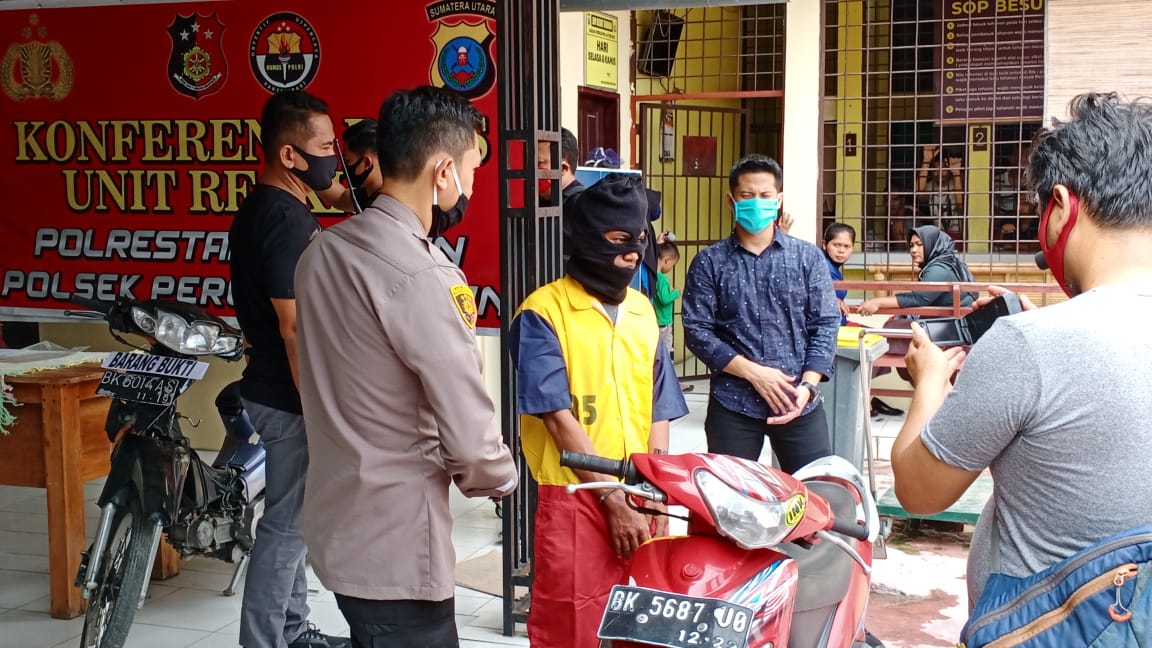 “Pelaku tsk (tersangka) dijerat dengan hukum pidana melanggar pasal 363 KUHPidana,” terangnya Kapolsek Percut Sei Tuan dalam Konferensi Pers.