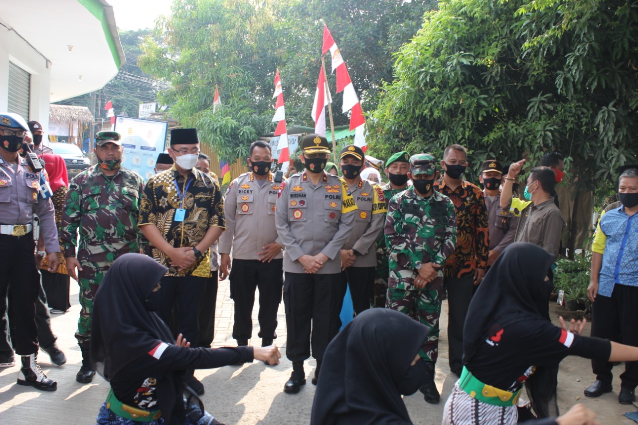 SERANG | TRANSPUBLIK.co.id – Wakapolda Banten Brigjen Pol Wirdhan Denny bersama Wakil Gubernur Banten Andika Hazrumy, Dirbinmas Polda Banten Kombes Pol Riki Yanuarfi, Kasiter Korem 064/MY Kolonel A. Jamali, Dandim 0602/ Serang Kolonel Inf. Soerhardono, Wakil Bupati Sedang Panji Tirtayasa dan Kapolres Serang AKBP Mariyono dan unsur lainnya mengunjungi Kampung Tangguh Nusantara Kalimaya yang berada di Kp. Pelawad Kidul, Desa Pelawad, Kec. Ciruas, Kab Serang, Kamis (13/8/2020).