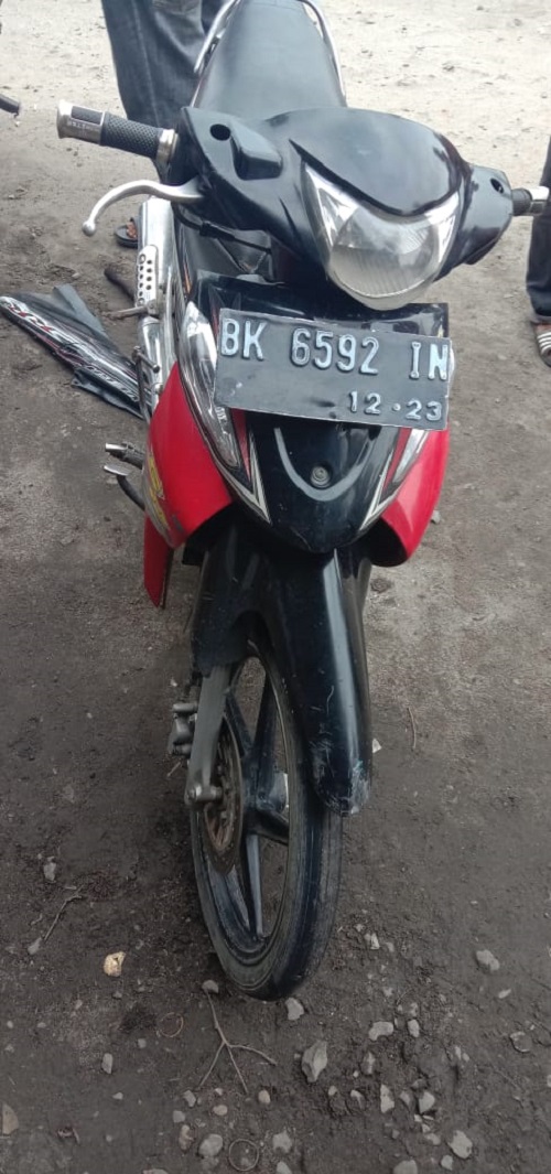 Informasi dihimpun wartawan, pengendara Sepeda Motor Suzuki Smash BK-6592-IN seorang pria Mr. X (tidak diketahui identitasnya) mengalami luka pecah pada bagian kepala, luka lecet pada pinggang sebelah kanan hingga meninggal dunia ditempat.