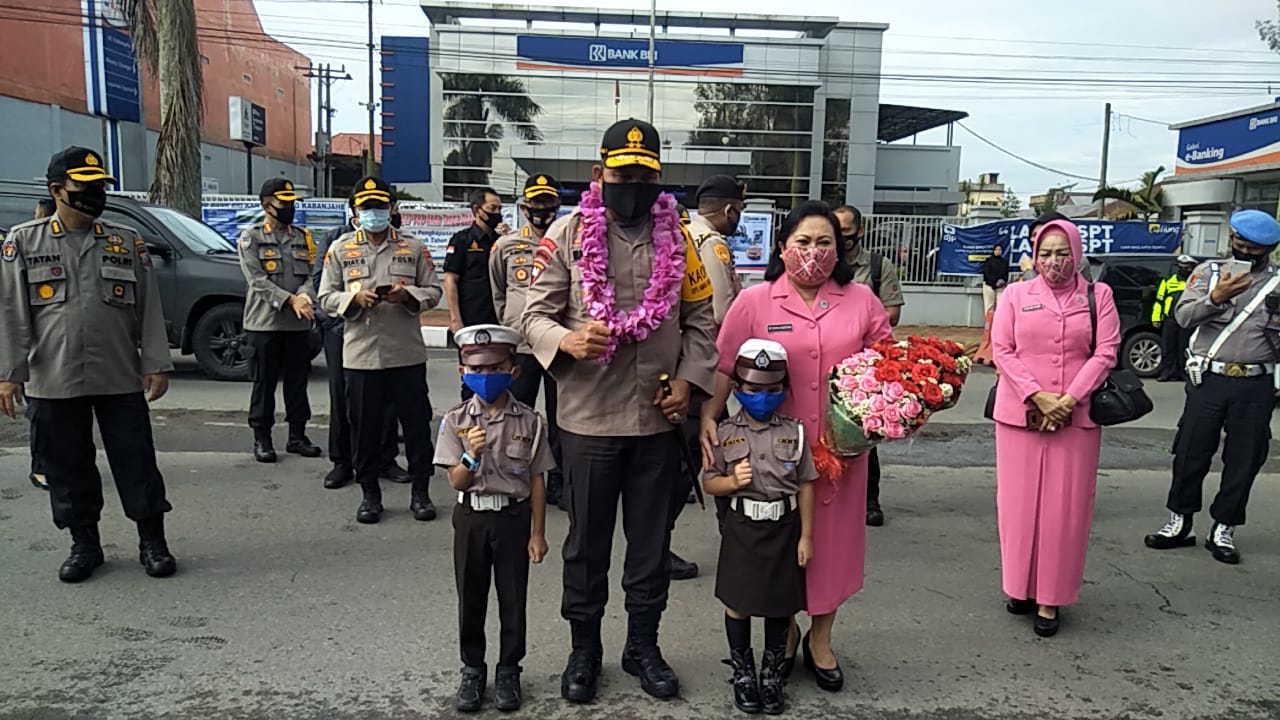Setibanya di Polres Tanah Karo, Kapolda Sumut dan Ketua Bhayangkari langsung disambut Bupati Tanah Karo Terkelin Brahma, Kapolres Tanah Karo AKBP Yustinus Satyo Indriono, Ketua DPRD Tanah Karo, dan Polisi Cilik Polres Tanah Karo.