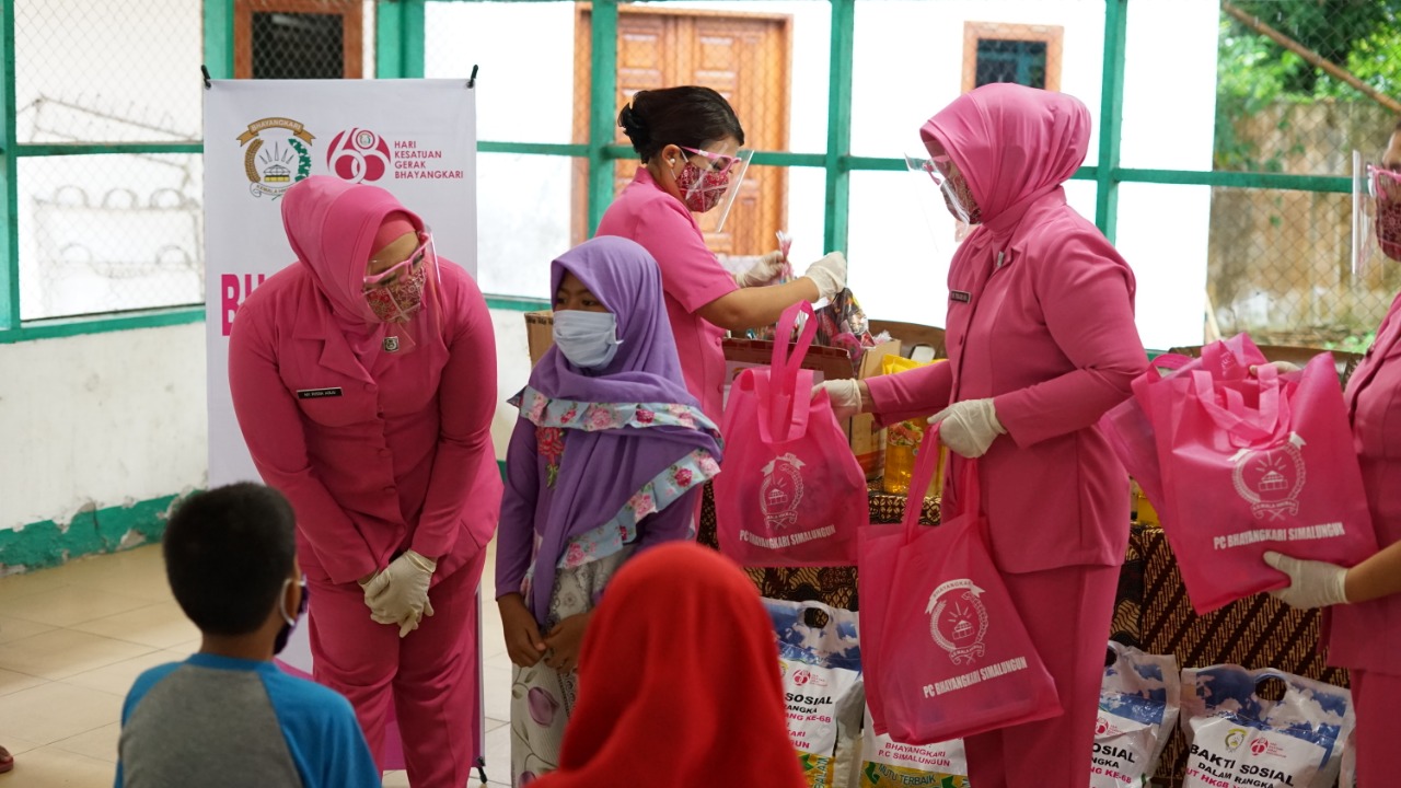 SIMALUNGUN | TRANSPUBLIK.co.id -Dalam rangka Memperingati Hari Kesatuan Gerak Bhayangkari (HKGB) ke-68, Pengurus Cabang Bhayangkari Simalungun melaksanakan program Bhayangkari Peduli dengan memberikan bantuan sosial kepada anak yatim dan piatu di panti asuhan Islamic Centre dan panti asuhan Zarfat HKI.