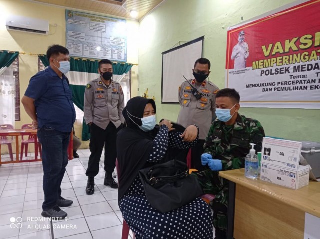 Menjelang HUT Bhayangkara Polri ke-75, PolsekMedanKota Gelar Program Vaksinasi Massal