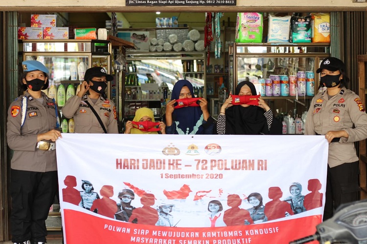 ROKAN HILIR | TRANSPUBLIK.co.id – Dalam rangka menyambut Hari Ulang Tahun (HUT) Polisi Wanita (Polwan) ke-72 Tahun yang jatuh pada 1 September ini, Polwan Polres Rokan Hilir (Rohil) menggelar Bakti Sosial (Baksos) memberi bantuan Sembilan Bahan Pokok (Sembako) kepada warga kurang mampu, Senin (31/8/2020) sekira pukul 09.00 WIB di seputar Ujungtanjung, Kecamatan Tanah Putih.