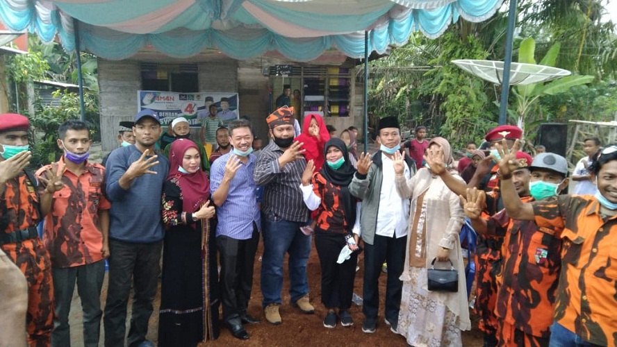 ROKAN HILIR | TRANSPUBLIK.co.id – Kedatangan pasangan calon (Paslon) bupati dan wakil bupati Rokan Hilir (Rohil) Afrizal Sintong dan H Sulaiman saat melakukan kampanye dialogis, Kamis (26/11/2020) sore disambut meriah oleh warga Kepenghuluan Bagan Cempedak, Kecamatan Rantau Kopar.