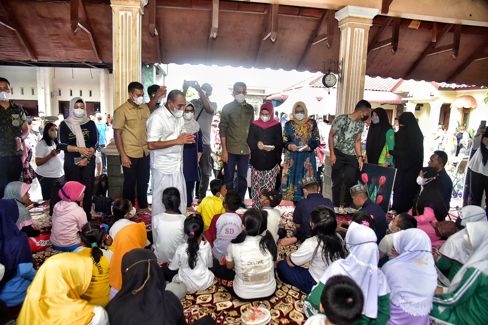 Usai doa bersama, acara tersebut juga diisi dengan pemberian santunan kepada anak yatim, serta memotong tumpeng dan kue ulang tahun. Tumpeng pertama, Edy Rahmayadi menyulang pada Musa Rajekhsah beserta istri. (TP/tra)