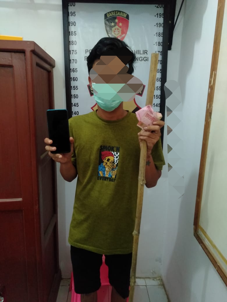 “Atas kejadian tersebut si korban langsung membuat Laporan ke Polsek Padang Hilir, setelah pihak polsek mendapat laporan tersebut unit Reskrim Polsek Padang Hilir yang dipimpin oleh Kanit Reskrim Ipda T. Samosir bersama anggota melakukan penyelidikan dan pada hari Kamis (10/12/2020) WIB pelaku berhasil ditangkap di Rumahnya dan kemudian di boyong ke Polsek Padang Hilir untuk proses selanjutnya,dan barang Bukti yang ikut diamankan 1 buah Kotak Hand Phone Realme 5,1 batang galah bambu panjang swkira 2,5 Meter dan Uang pecahan Rp 300.000.- dari hasil kejahatan,” ucapnya.