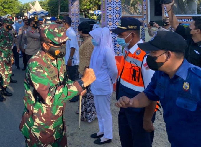 LABUHAN BATU | TRANSPUBLIK.co.id – Panglima Komando Daerah Militer I Bukit Barisan Mayjen TNI Hassanuddin, SIP, MM bersama Kapoldasu Irjen Pol. Drs. RZ Panca Simanjuntak meninjau Pos Pam penyekatan Arus Mudik, Labuhanbatu, Sabtu (15/5/2021).