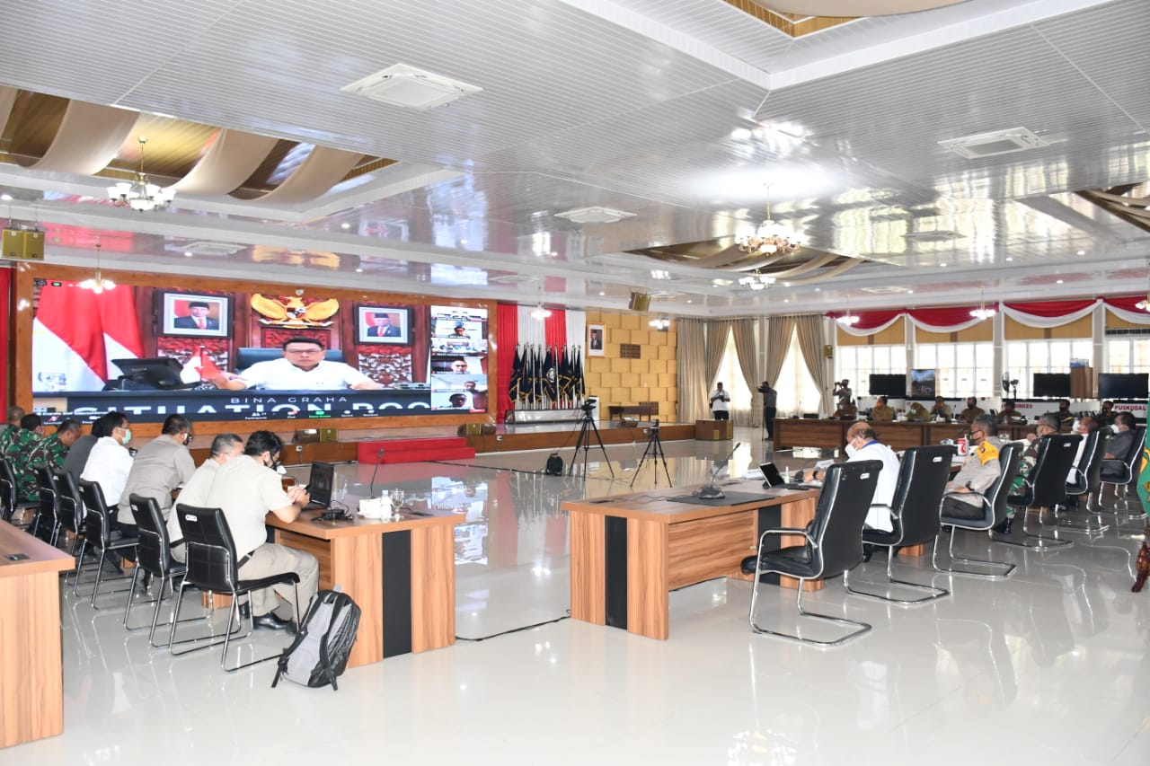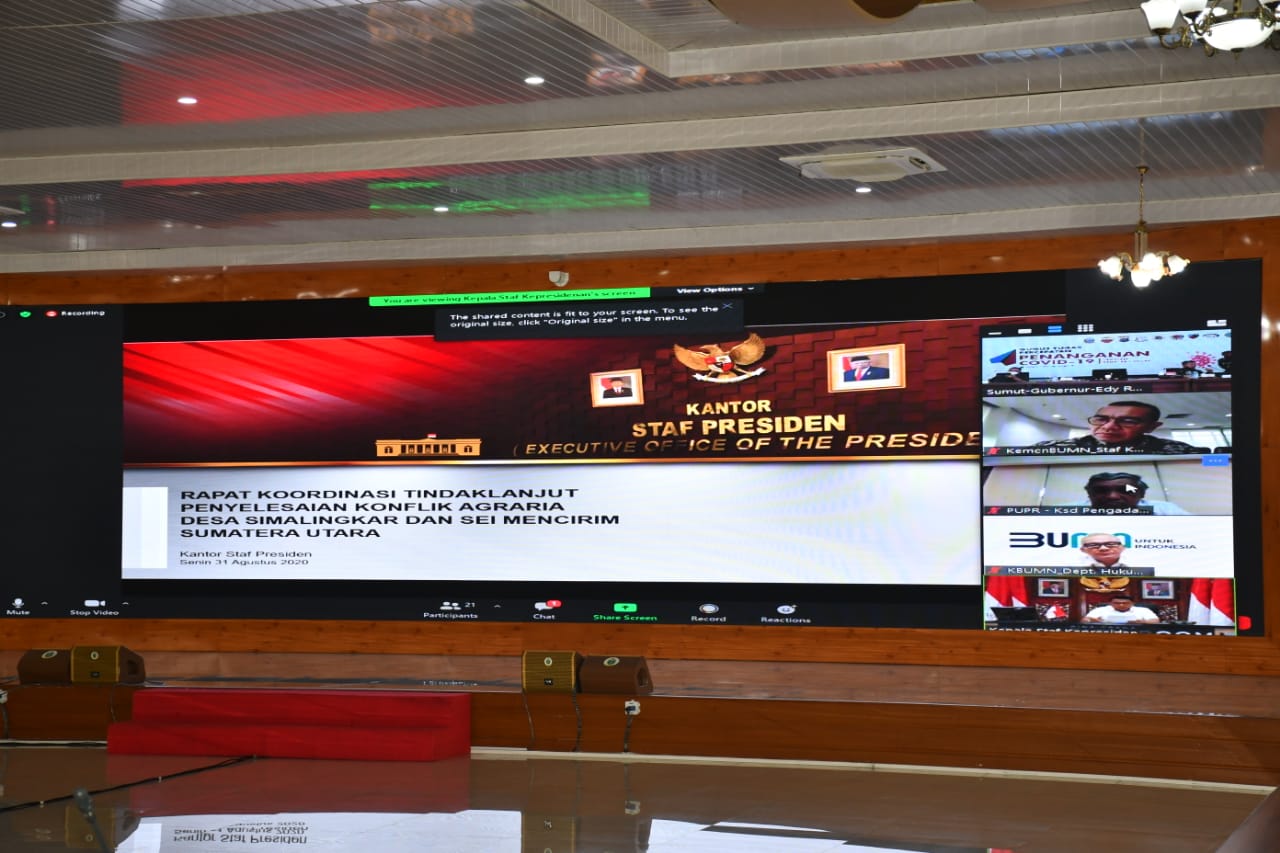 MEDAN | TRANSPUBLIK.co.id – Panglima Kodam I/Bukit Barisan, Mayjen TNI Irwansyah, MA, MSc, turut menghadiri Rapat Koordinasi Tindak lanjut Penyelesaian dari Konflik Agraria Desa Simalingkar dan Sei Mencirim, Sumatera Utara yang digelar secara virtual melalui Video Conference di Posko Gugus TPP Covid-19 Sumut di Jln. Sudirman, Medan, Senin (31/8/2020).