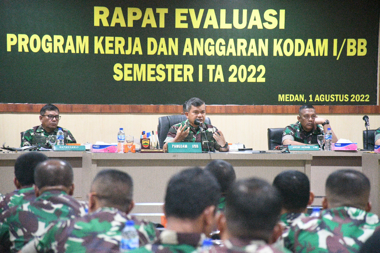 Dalam sambutannya Pangdam I/BB menyampaikan, tujuan diselenggarakan rapat evaluasi pelaksanaan Program Kerja dan Anggaran Kodam I/BB TA. 2022 ini adalah untuk menilai dan mengukur sejauh mana pencapaian program kerja dan anggaran satuan kerja Kodam I/BB.