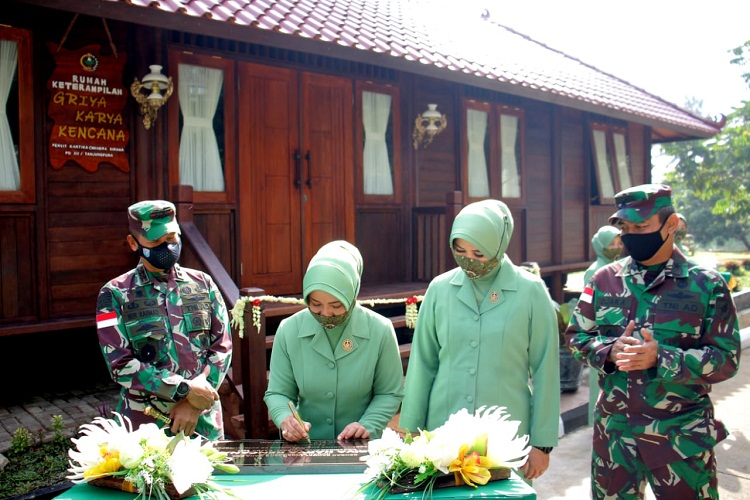 “Untuk itu saya kira sangatlah tepat, dari hasil diskusi kami para suami memberikan kado berupa rumah radank, yang kita berikan nama Rumah Keterampilan Griya Karya Kencana,” kata Pangdam.