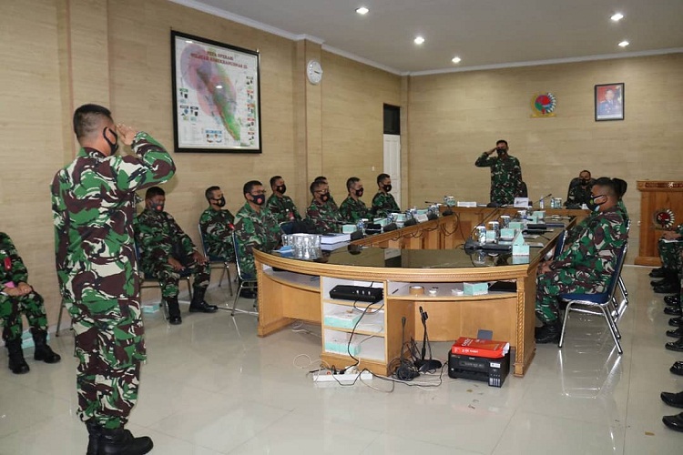 MEDAN | TRANSPUBLIK.co.id – Panglima Kosekhanudnas III Marsekal Pertama TNI Esron S.B. Sinaga, S.Sos., M.A., didampingi para Asisten Kosekhanudnas III dan perwakilan para Perwira mengikuti taklimat awal wasrik Itkohanudnas Tahun Anggaran 2021 di ruang rapat Kosekhanudnas III, Senin (15/03//2021).