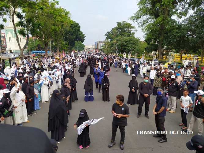 MEDAN | TRANSPUBLIK.co.id – Peserta Parade Tauhid yang tergabung dalam komunitas Islam se-Kota Medan menggelar acara Parade Tauhid dengan berkeliling di beberapa titik jalan Kota Medan untuk memperingati Tahun Baru Islam, 1 Muharram 1442 H, Kamis (20/8/2020).