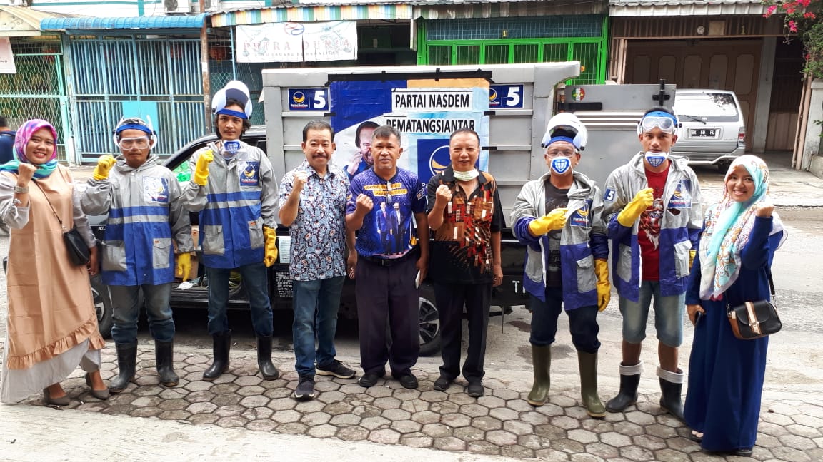 PEMATANG SIANTAR | TRANSPUBLIK.co.id — Ditengah merebaknya wabah virus corona (covid-19) partai Nasdem pada hari Kamis (3/4/2020) sekira pukul 11.00 WIB menggelar bhakti sosial ke rumah rumah warga untuk melakukan penyemprotan disinfektan yang dilakukan di Kelurahan Baru, Kecamatan Siantar Utara, Kota Pematang Siantar.