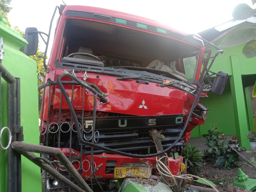 Sementara itu, supir truk, Sugiman (51) warga Kisaran mengatakan truk dibawanya bermuatan pupuk yang dibawa dari Medan ke perkebunan PTPN IV Kisaran menabrak tembok pagar dikarenakan kerusakan setir.