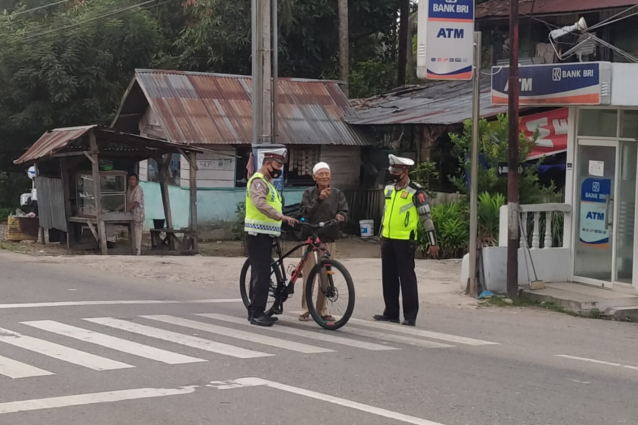 Peduli dengan Kondisi Kakek Pengendara Sepeda, “Ini yang Dilakukan Bripka Yogi Yanto Saat Gatur Lalin”