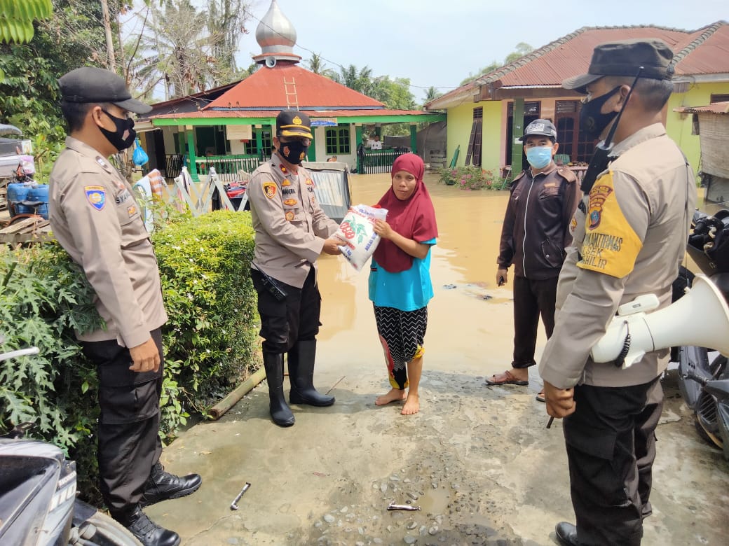 Kapolsek bersama anggota melaksanakan giat Minggu Kasih dengan membagikan beras kepada warga masyarakat yang terdampak banjir, guna untuk meringankan beban warga di Kelurahan Tebing Tinggi Lama, Kecamatan Tebing Tinggi Kota dan Kelurahan Tambangan Hulu, Kecamatan Padang Hilir, Kota Tebing Tinggi, adapun yang mendapatkan bantuan sembako tersebut untuk sementara masih 6 KK.