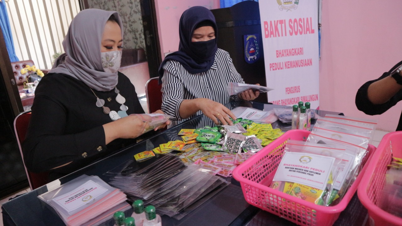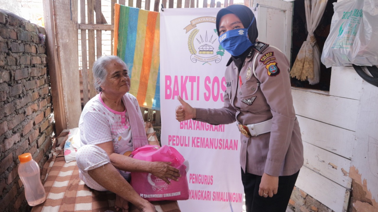 Sebanyak 150 paket bantuan kemanusiaan ramah perempuan dan anak diberikan oleh Bhayangkari Cabang Simalungun kepada masyarakat khususnya kaum Lansia dan kelompok rentan seperti ibu hamil dalam kegiatan Bhayangkari Berikan Paket Bantuan Kemanusiaan Ramah Perempuan dan Anak.