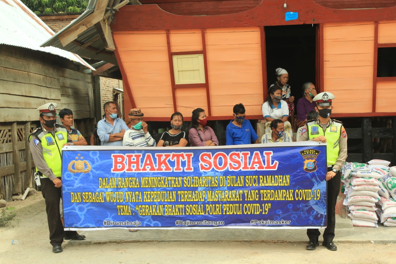 Setelah menyampaikan pemberian bantuan pangan dan bibit jagung di Kecamatan Simanindo, Kapolres Samosir kembali melakukan aksinya sekaligus di tiga kecamatan di Kabupaten Samosir Sumatera Utara, yaitu 280 keluarga Desa Salaon Toba di Kecamatan Ronggurnihuta, 110 keluarga Desa Pardugul di Kecamatan Pangururan serta 250 keluarga Desa Nainggolan dan seluruh petugas Pelabuhan Sipinggan di Kecamatan Nainggolan, Kamis (21/5/2020).
