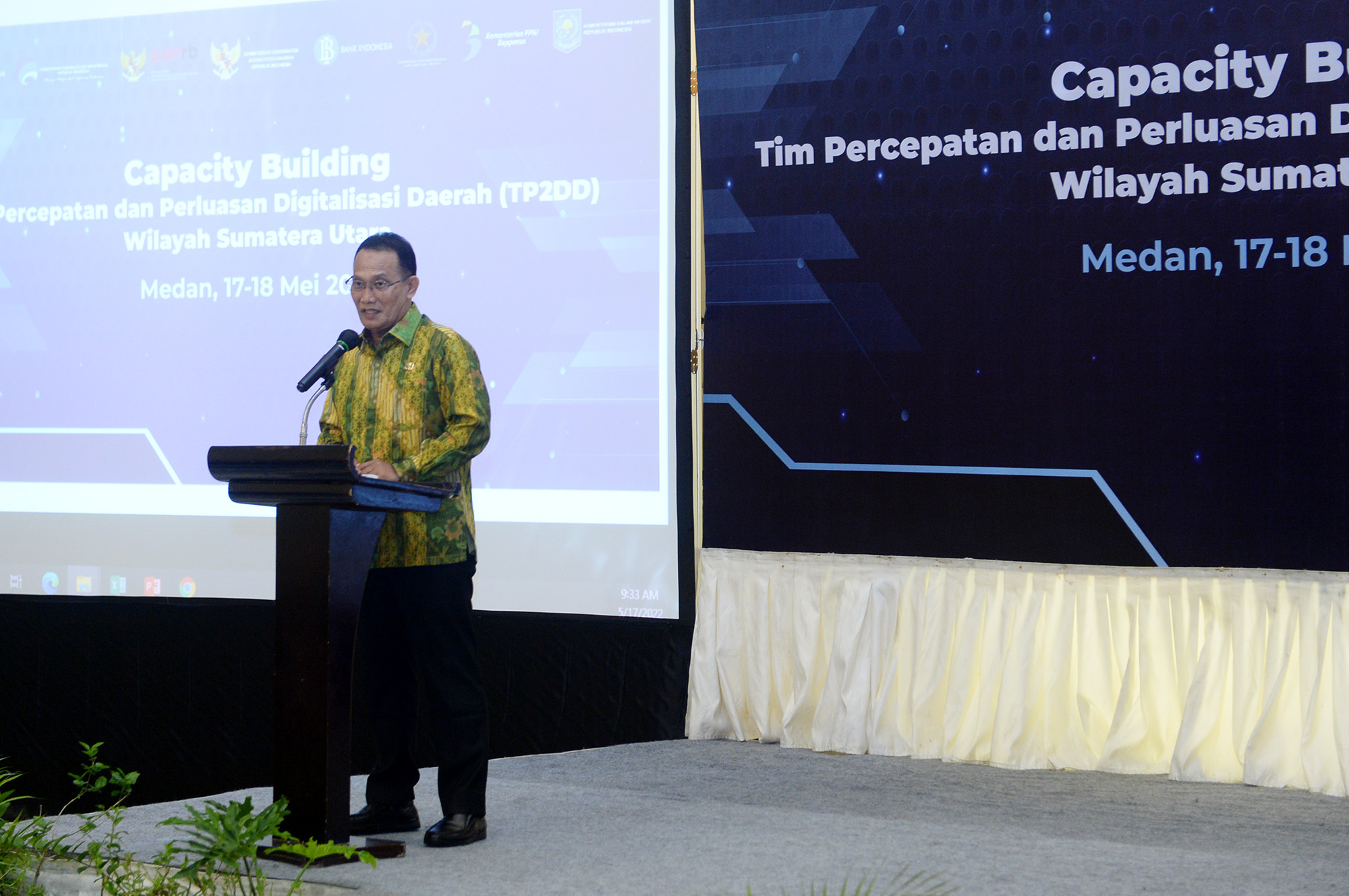 Hal itu disampaikan Penjabat (Pj) Sekretaris Daerah Provinsi (Sekdaprov) Sumut Afifi Lubis pada Capacity Building Tim Percepatan dan Perluasan Digitalisasi Daerah (TP2DD) wilayah Sumut di Hotel Aryaduta, Jalan Kapten Maulana Lubis, Medan, Selasa (17/5). Turut hadir Sekda kabupaten/kota se-Sumut.