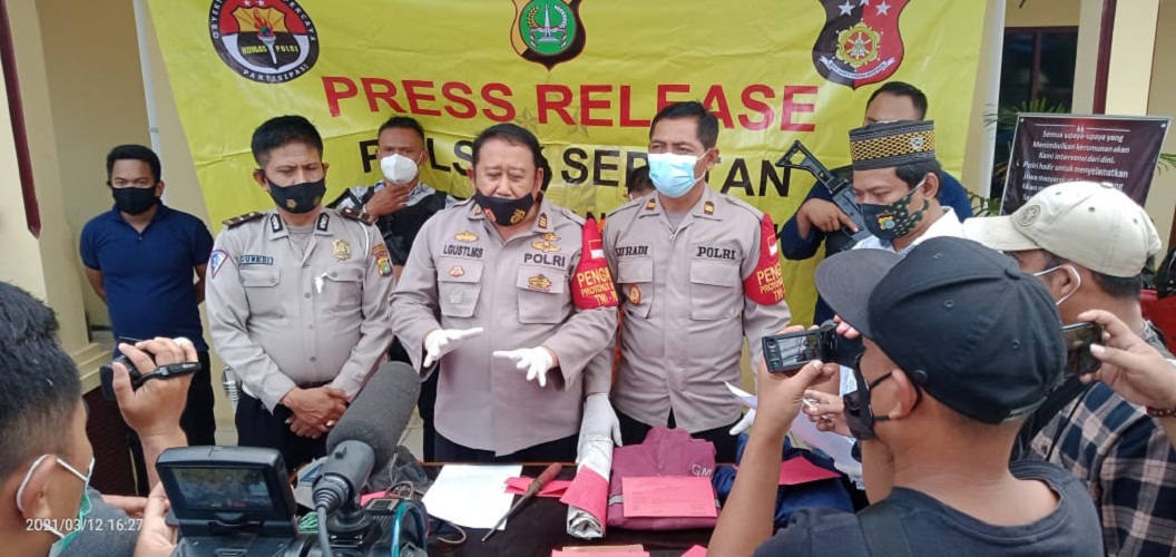 “Alhamdulillah kami berhasil tangkap dua terduga pelaku pencuri kambing yang viral di youtube dan about Tangerang,” kata Kapolsek Sepatan, AKP I Gusti Moh saat konferensi pers, di Mapolsek Sepatan, Jumat (12/3/2021).
